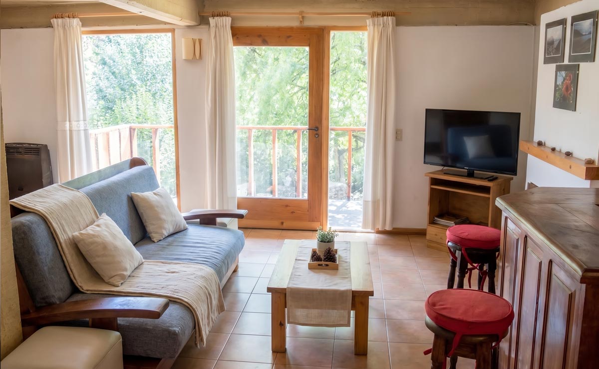 Con una superficie de 90 metros cuadrados tiene 2 dormitorios para 4 personas. La habitación matrimonial cuenta con placard y bowindow. Tiene un gran living con hogar a leña, balcón con vista al arroyo, cocina completa y baño con bañera.